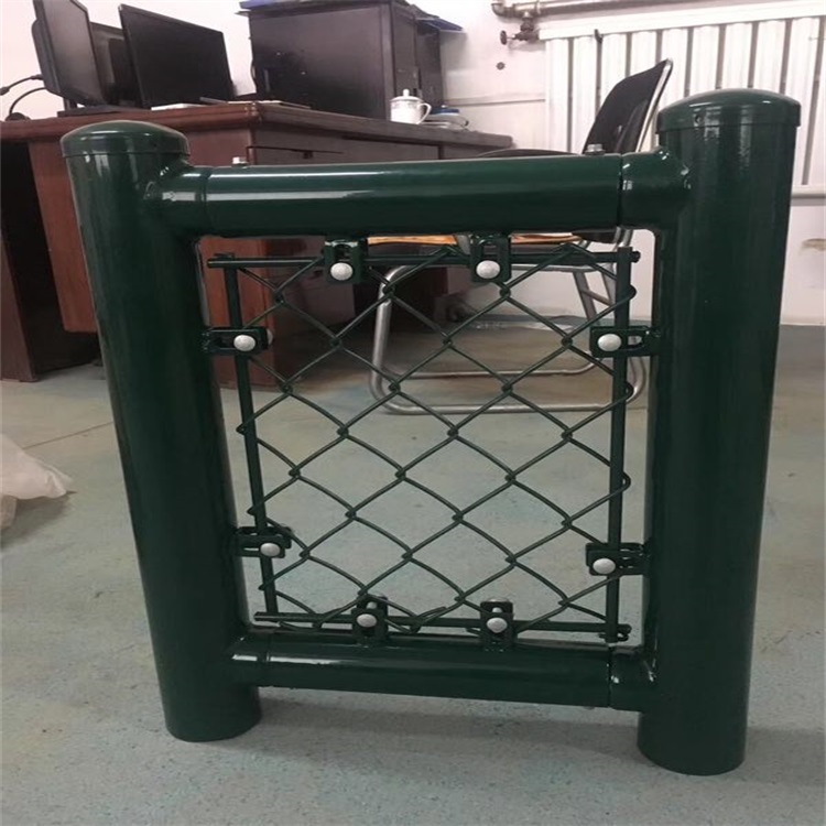 套管式體育場圍網是護欄網在體育場地上的使用,體育護欄網分為拼裝式結構與邊框型結構兩大類,拼裝式立柱與橫管分隔,包塑圍網成卷獨自包裝,立柱與橫管現場經過銜接件進行銜接,邊框型體育場圍網包塑圍網與邊框構成一體,立柱獨自分隔,現場裝置十分簡略方便。