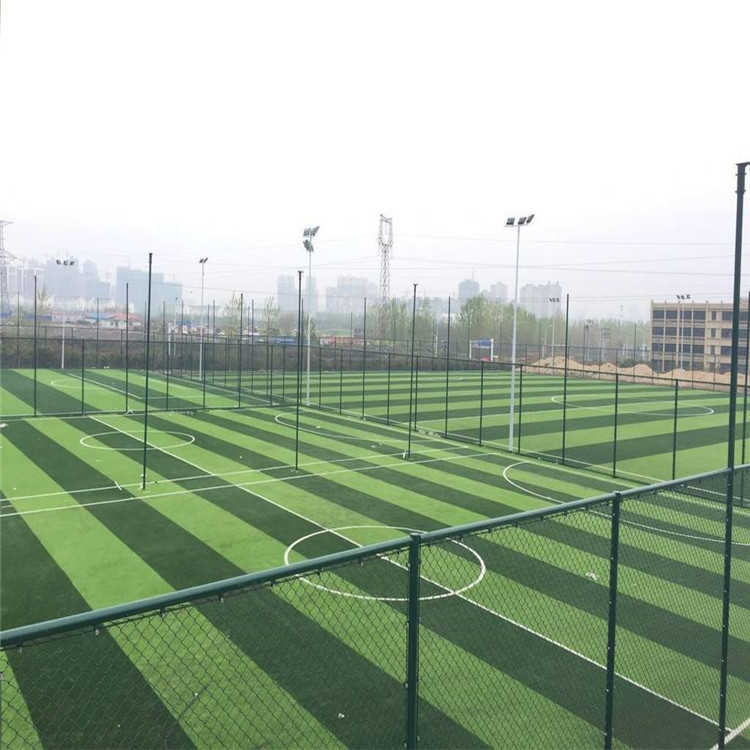 體育場圍欄把立柱固定于恰當方位,直到混凝土硬化停止。混凝土攝生7D期間,不應在立柱、拉索和支撐上裝置或拉緊任何資料或部件。一切立柱均應依照圖紙要求和線形筆直埋設。尺度和類型契合要求的防護網網片,應按圖紙規則的方法從立柱端部開端結實裝置到立柱的掛鉤上。