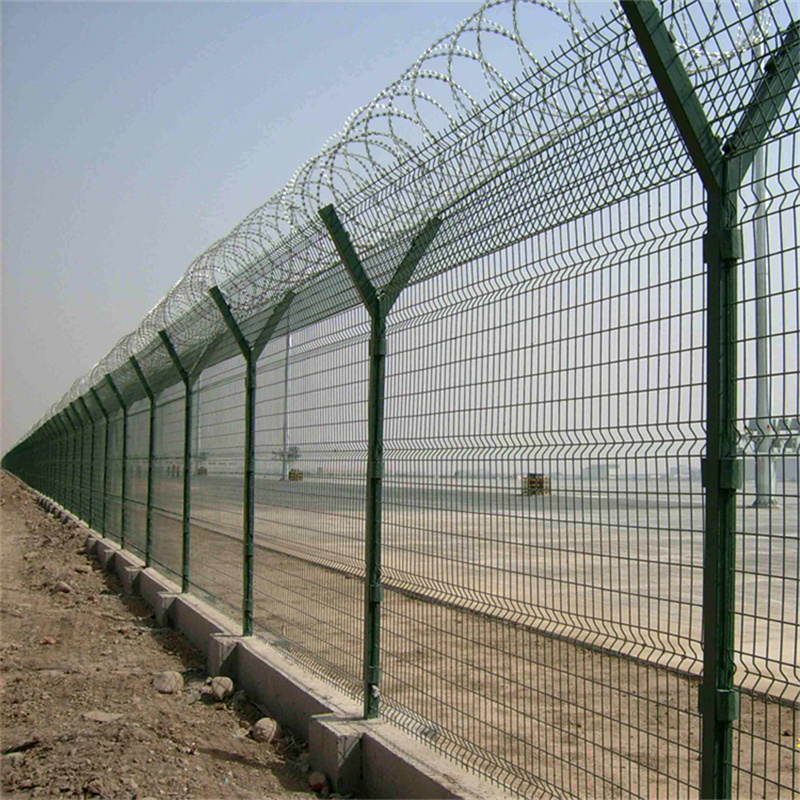 焊接式機場圍界美觀大方,與周圍環境以及任何景觀、設備都能完美相融合。也正因為如此,焊接式機場圍界常被大量應用于機場隔離,監獄防護、軍事基地圈護等特殊地帶的安全防護。