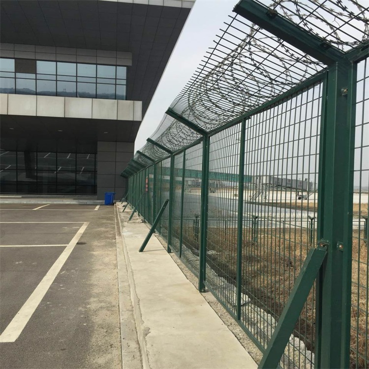 3)V型托架刀刺網拉絲采用貫穿式,每隔20米固定拉絲,立柱做調直處理,每20米校正,每100米偏差角度不大于5°,安裝整體無歪斜,隔離網整體呈直線。