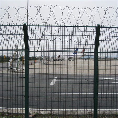 機場鋼絲網圍墻,機場鋼絲網圍欄  機場防御網材質:低碳鋼絲、鋁鎂合金絲;編織:編織焊接結構:低碳鋼絲焊接而成的網片+立柱+刺鐵絲(可選)+斜撐(可選)連接而成;網片:采用優質盤條作為原料,經由鍍鋅和高附著力粉末浸塑二層保護的焊接式網片,具有日久防腐蝕和紫外線的特性。 機場隔離柵立柱:表面處理為鍍鋅和浸塑,也可以任選一種,蓋有塑料蓋或防雨帽。