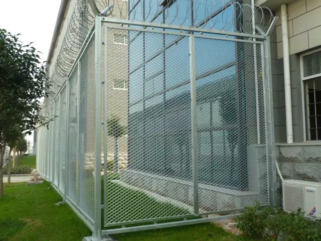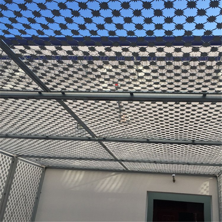 監獄防攀爬隔離網 監獄安全網又稱作“Y型安全防御護網”,是由V型支架立柱,加強型焊接片網,安全防盜連接件和熱鍍鋅刀片刺籠組成,強度和安全防御性級別很高。近年來,被廣泛應用在監獄,軍事基地等高安全場所。注:如果在監獄護欄網頂部加裝刀片刺絲、刀片刺繩后又很好的增強了安全防護性能。采用電鍍、熱鍍、噴塑、浸塑等防腐形式,具有很好的kang老化、kang曬、nai候等特點。