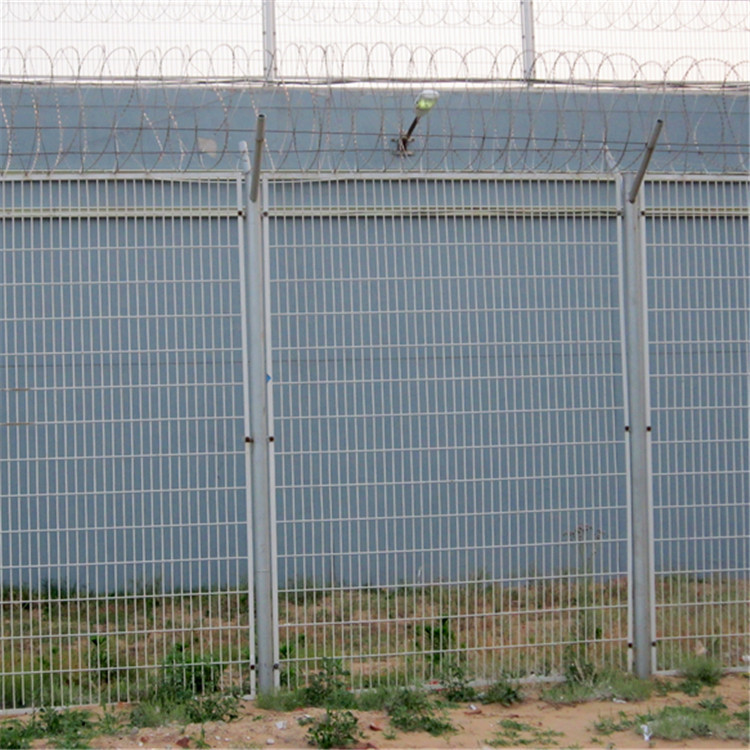 監(jiān)獄防爬隔離網(wǎng)由網(wǎng)片、立柱、邊框、連接件等構件組成;網(wǎng)片宜為鋼絲焊接網(wǎng)或鋼板網(wǎng);