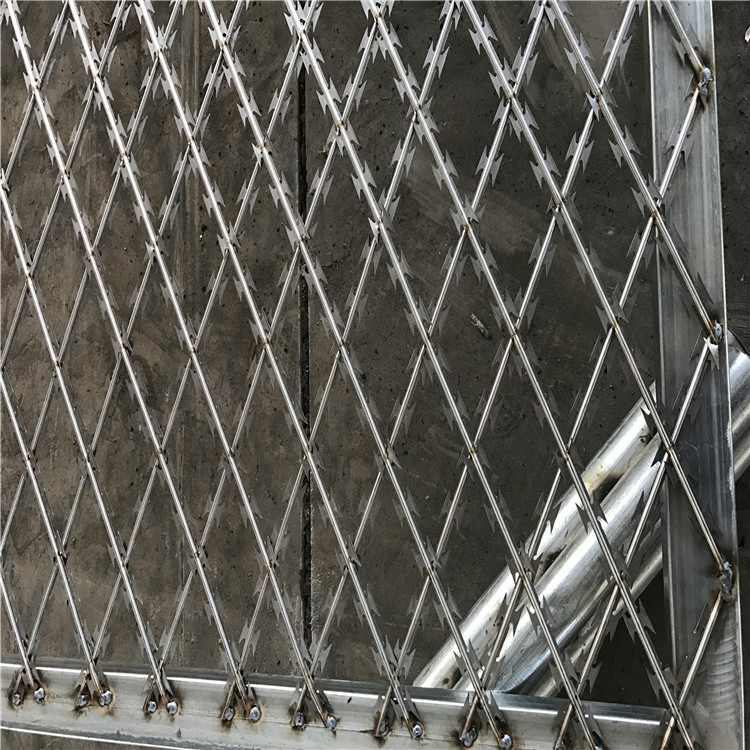 焊接刀刺網,又叫籬笆刀刺網,焊接刀片刺網,刀片焊接網,刀片刺繩網片,按孔分為長方孔刀刺網,正方孔刀刺網,菱形孔刀刺網,斜方孔刀刺網.下面我來介紹一下刀片刺網的生產過程,