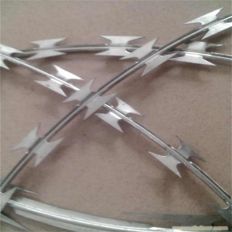 不銹鋼刀片刺網(wǎng)用于各種圍墻的隔離防護(hù),起到防攀爬的效果,是當(dāng)今防護(hù)效果非常流行的一種隔離防護(hù)網(wǎng)。