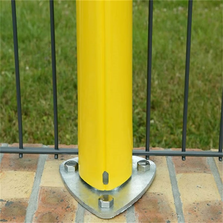 第二種是法蘭盤式安裝,專門適配水泥、瀝青等硬化地面,立柱底部焊接法蘭盤,用膨脹螺栓或化學錨栓將其固定在地面,校正位置后就能連接網片,安裝效率高且不破壞地面結構。