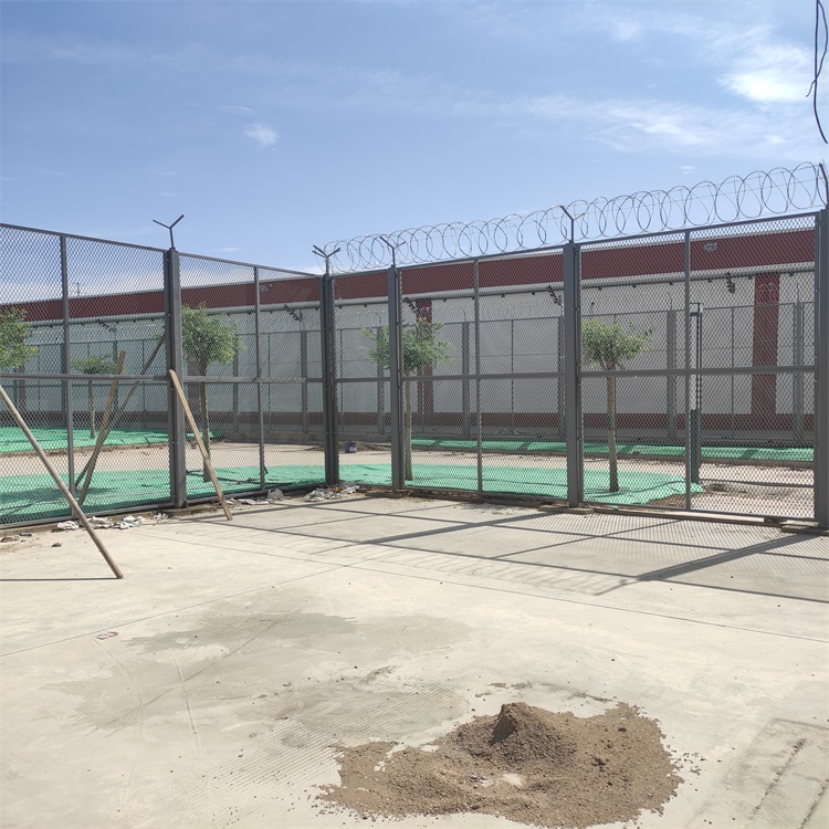 2、監獄鋼板隔離網墻設計要求整體連貫一致,框網方正,對角線誤差不大于2cm。 隔離網網頁安裝離地距離5-8cm,框網與立柱采用螺栓固定邊耳式連接網頁每邊與立柱連接點不少于六處。
