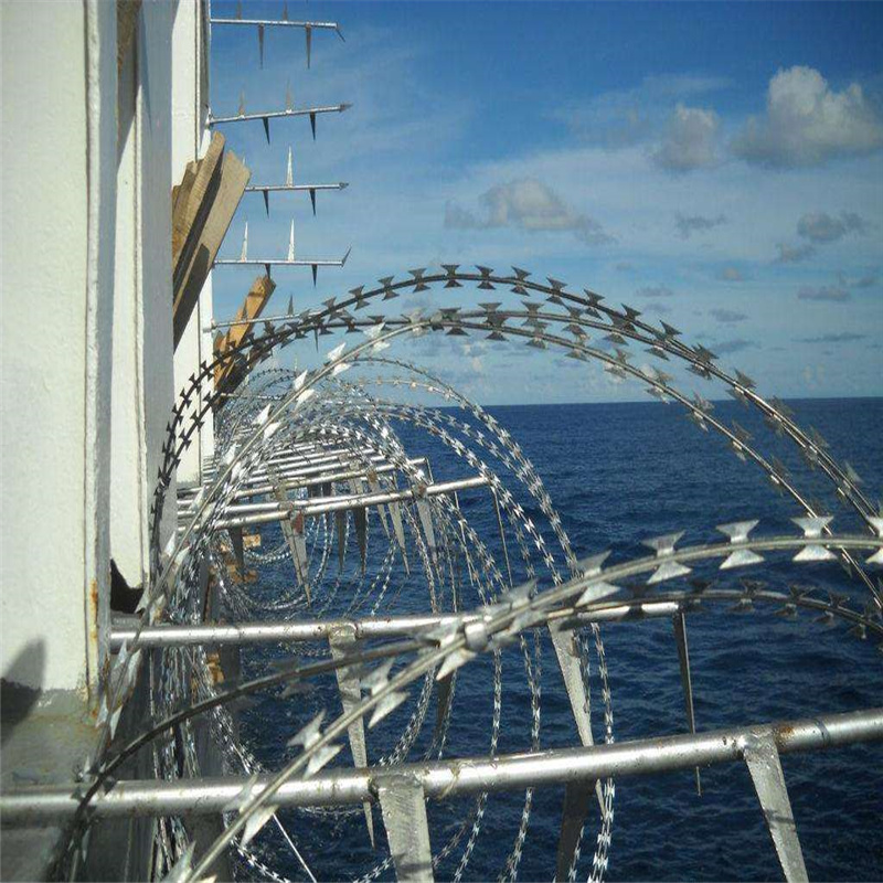噴塑刀片刺繩特色涂層外觀質(zhì)量優(yōu),附著力及機(jī)械強(qiáng)度強(qiáng);噴涂施工固化時間短;涂層耐腐耐磨才能高出許多。噴塑刀片刺繩有如此多的長處,因而已受廣大客戶所喜愛。噴塑刀片刺繩特色被廣用于牧場鴻溝、鐵路、高速公路的阻隔防護(hù)以及園林公寓,單位,監(jiān)獄,哨卡,邊防等的圈禁防護(hù)。