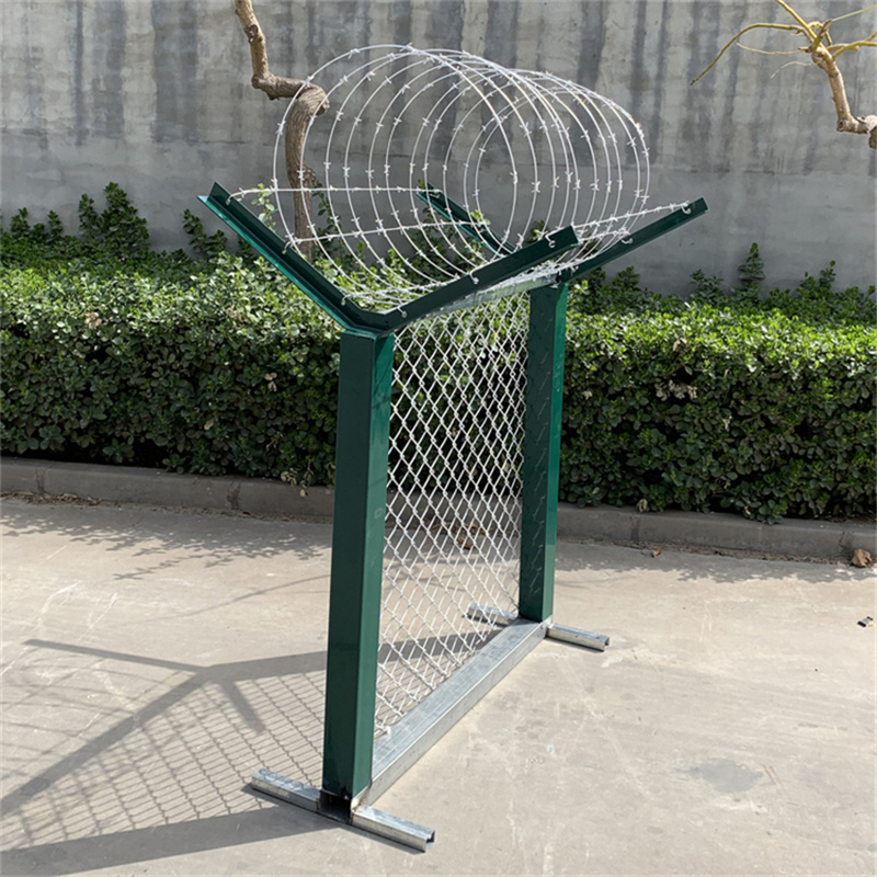 鋁包鋼線機場圍界網是使用一種新型原材料鋁包鋼絲制作而成的機場圍界網產品,鋁包鋼線機場圍界網是將鋼絲芯線外層包裹一層鋁作為外層防腐材料,它比傳統的PE或者PVC包塑鋼絲防腐性能更強,通常可以延長機場圍界產品使用壽命10-15年以上,適合于沿海空氣濕潤腐蝕性強的地區和環境較惡劣的沙漠邊緣地帶。鋁包鋼線機場圍界網網孔一般為50*50mm,絲徑5mm,頂部可搭配有V字叉和刀刺滾籠以加強防護能力。它還有一個優點就是鋁層是與鋼絲一起經機械拉拔到一起的,不易脫落。