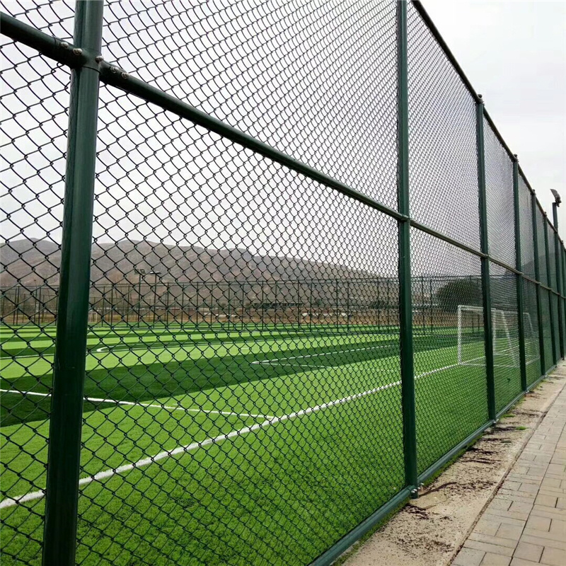 3、足球場圍網(wǎng)采用包塑的鐵絲網(wǎng),網(wǎng)眼大面積應(yīng)為50毫米×50毫米(或45×45毫米),圍網(wǎng)的固定件不能有銳利的邊沿。