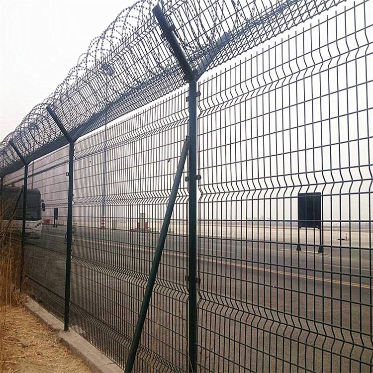 機場巡邏網圍界立柱:表面處理為鍍鋅和噴涂也可以任選一種,頂端蓋有塑料蓋或防雨帽。根據環境和安裝方式的不同,可選用預埋30cm水泥澆筑、加底座等方式。