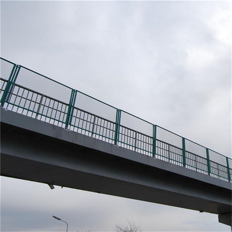 立交橋防拋網(又名橋梁防護網、橋梁護欄網)是由低碳鋼絲經過拉拔、編織、焊接、浸塑等一系列工藝加工而成,普遍用于市政高架橋,高速公路立交橋,鐵路立交橋,過街天橋,港口碼頭,畜牧,養植等的護欄防護。