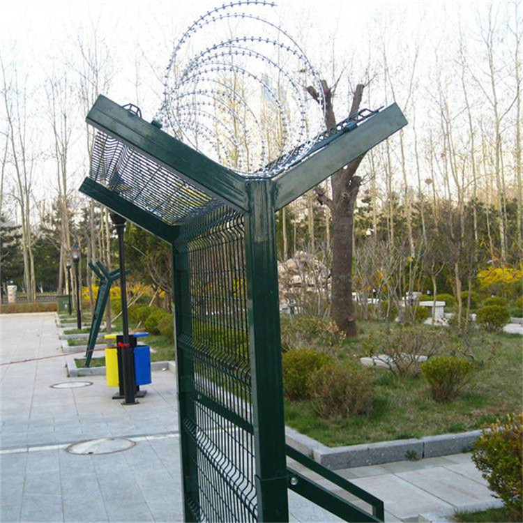 6、機場圍界網立柱頂部的V形支架,需與所有立柱形成的直線方向一致。