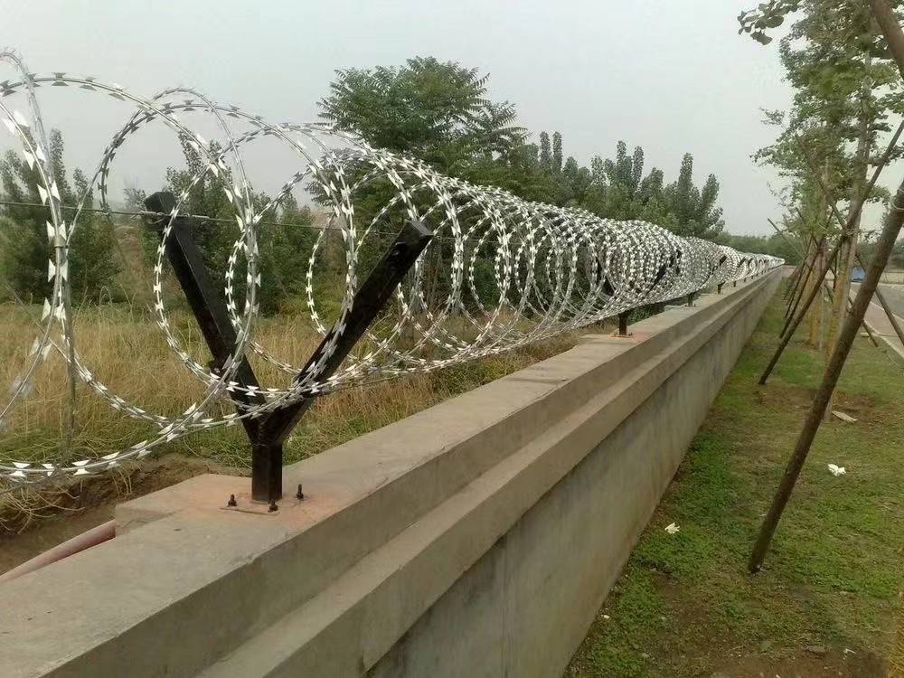 監獄隔離網頂部蛇腹型刀刺網的材質和安裝方法: