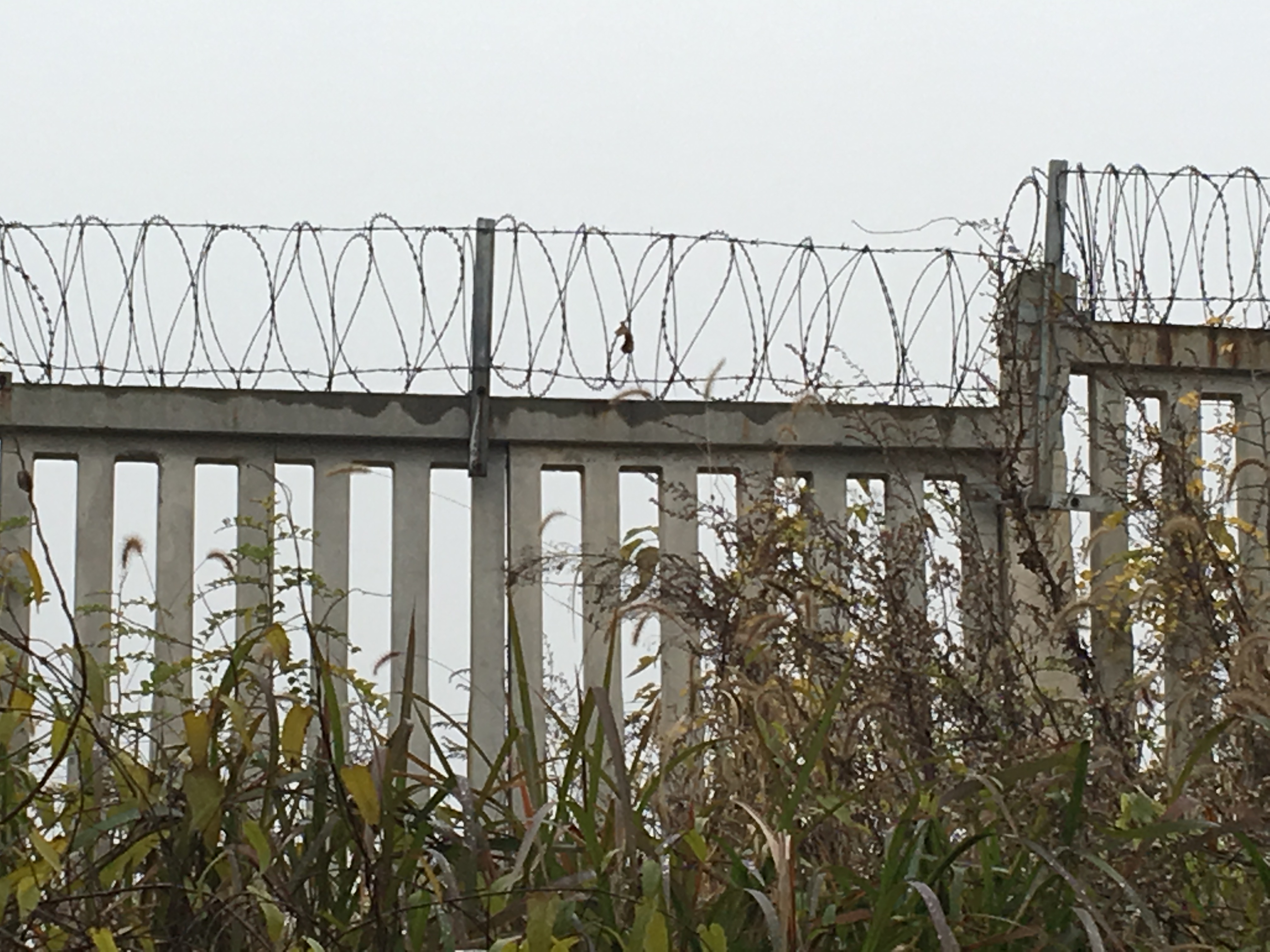 鐵路專用刺絲滾籠設置規范:鐵路專用刺絲滾籠采用刀片刺繩繞圈后相臨兩圈每隔120”用刺絲連接卡固定,張開后形成蛇腹網狀,閉合后刀片刺繩圈徑為500mm,張開后每交叉圈安裝間距200mm,直徑不小于450mm。鐵路專用刺絲滾籠由刺絲連接卡扣與固定在支架上的縱向拉筋相連接,縱向拉筋與支架的連接采用02.5mm的冷拔鍍鋼絲繞2圈擰緊固定。鐵路專用刺絲滾籠刀片刺繩由沖切鋼板采用機械壓軋在鋼絲上成型,刀刺寬度22mm,兩刃垂直間距15mm,刀刺縱向間距34m,芯絲直徑為2.5mm。刀片采用厚度0.5mm的Q195鋼板沖切制作。