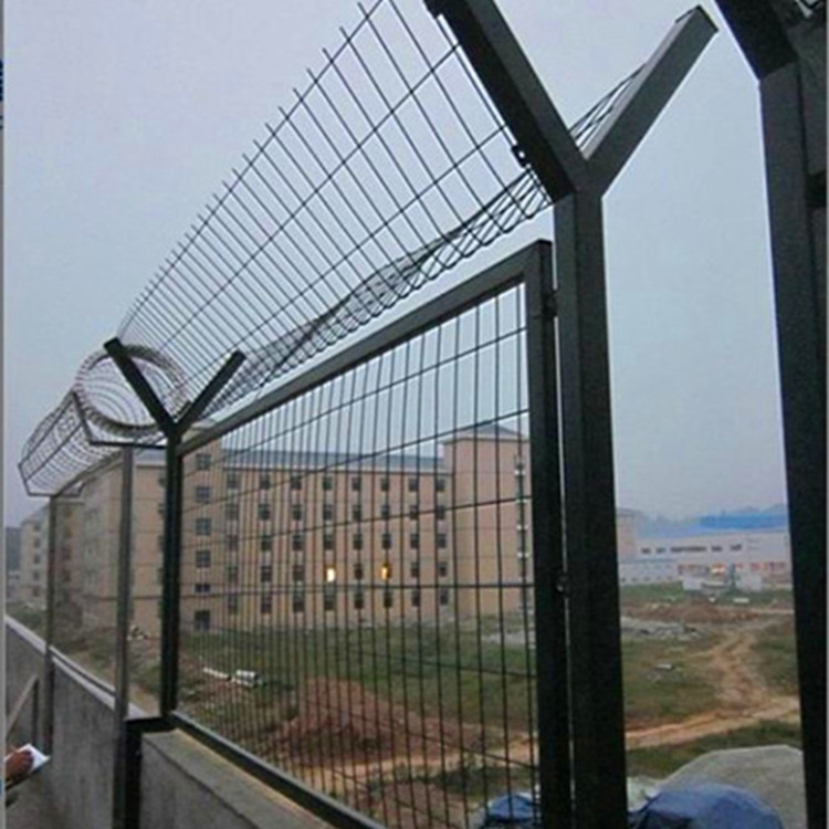 - 刀片刺網型鋼網墻:這種鋼網墻的網片主體為焊接刀片刺網,菱形網孔,刀片鋒利,防攀爬和阻嚇效果極佳。立柱一般為“Y”字型,頂部也會架設蛇腹型刀刺網,增強防護性能。