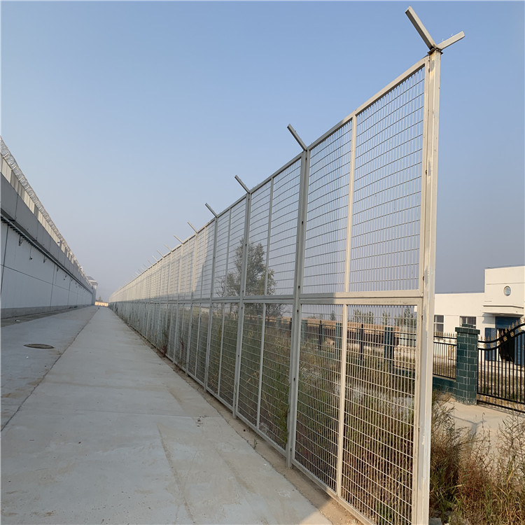 監獄周界鋼網墻是為了防止犯人逃脫增設的防攀爬圍網,一般常用的圈地用圍欄防攀爬能力遠遠不能滿足監獄防攀爬需求。因此常規的圍欄網現貨是不應用于監獄的。